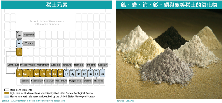 稀土元素(Rare Earth Elements, REE)是一組對現代科技與能源轉型極為關鍵的元素族群。這些元素雖廣泛存在於地殼中,卻因礦藏分布零散、提煉難度高,而被列為戰略性關鍵資源。根據美國地質調查局的定義,稀土元素共包含17種,其中涵蓋鑭系元素15種,以及化學性質相似的鈧與釔。這些金屬多呈銀白色、具延展性與導電性,並擁有獨特的磁性、光學與催化特性,使其在各種高科技產業中發揮無可取代的作用。
