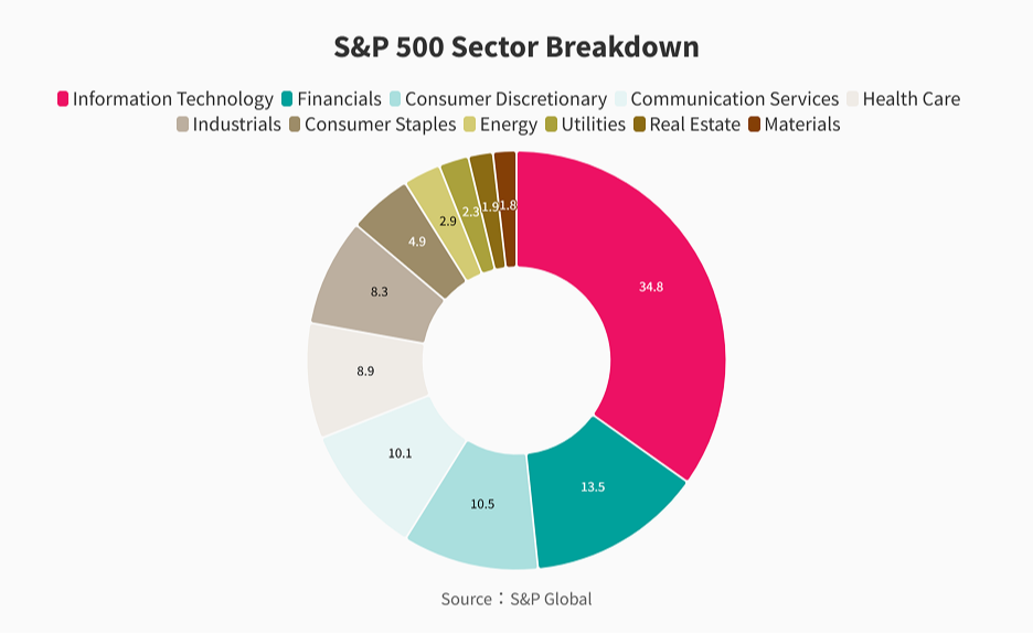美國金融業不僅在實體經濟中扮演關鍵角色,也在資本市場中具有舉足輕重的影響力。就美國最具指標性的S&P 500股價指數的結構來看,資訊科技以34.8%居首,而金融則以13.5%的比重居第二大產業。