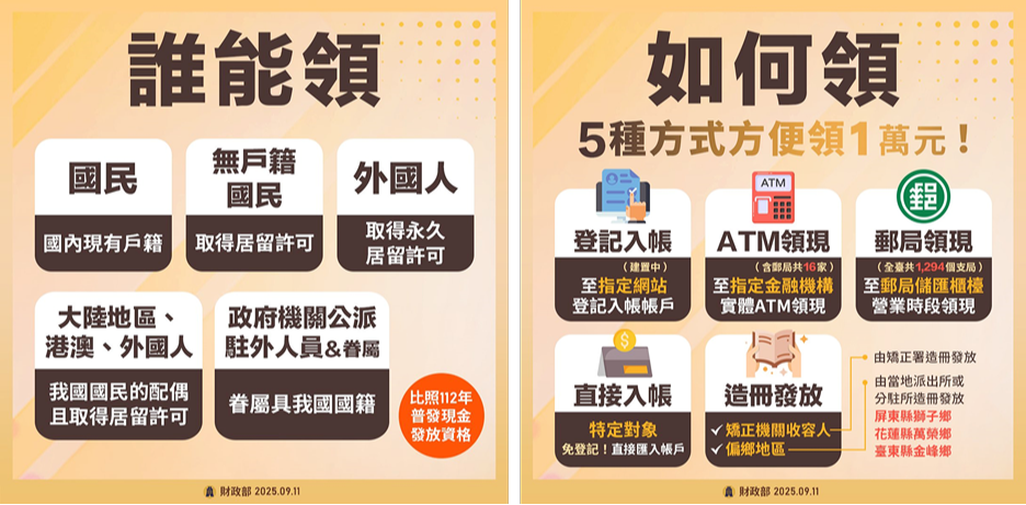 發放資格比照 112 年普發現金,以下對象每人都能領 1 萬元: