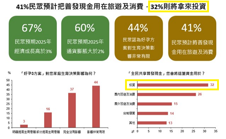 根據國泰金控《10月國民經濟信心調查結果》,41%的民眾預計把普發現金用在旅遊,32%的人則打算拿來投資,為數不少的民眾不只滿足於短期消費,而是希望讓這筆「突如其來的紅包」成為資產增值的起點。