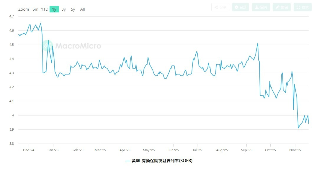 從CME Fed Watch Tool來觀察,從今年10月底開始,市場對於12月不降息的預估值就不斷提高,目前市場已預期不降息的機率將高達6成。反映在市場上,其實這也與全球股市開始修正的時間段非常接近。唯玉山證券投顧考量到目前市場SOFR利率趨緊的問題仍未解決,預期最終Fed妥協在12月降息的機率,可能還是比不降息來的高。