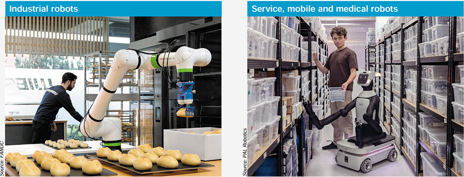 值得留意的是,服務機器人有著更為強勁、甚至可稱爆發式的成長動能。受惠於AI技術成熟、感測器成本下降、以及醫療照護、零售物流與家庭應用需求快速提升,服務機器人市場的成長速度遠高於工業機器人。