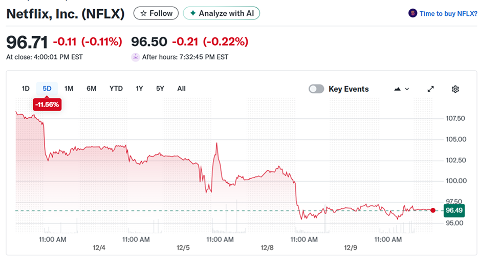 圖說:雖然Netflix收購華納兄弟探索有望強化內容版圖、提升長期成長動能,但高籌資壓力與監管不確定性,使股價短期震盪下行。