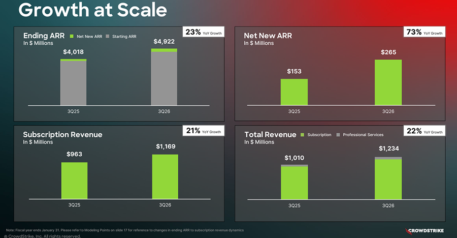 CrowdStrike(CRWD)近季營運動能主要來自訂閱業務成長與模組採用數提升,年度經常性收入持續擴大,且在高訂閱占比與規模擴張帶動下,公司維持穩定的毛利率與自由現金流表現。