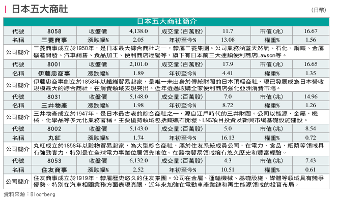 那5檔商社有何特點呢,玉山證券也整理如下表供投資人參考: