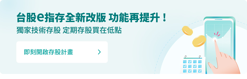 「台股e指存」是玉山證券的獨家存股工具,透過小額投入,輕鬆布局,不用煩惱進場時機。e指存讓你自動扣款、自動買進,省去操作負擔,更重要的是,交易成本還更具優勢,單筆兩萬(含)內手續費1元!