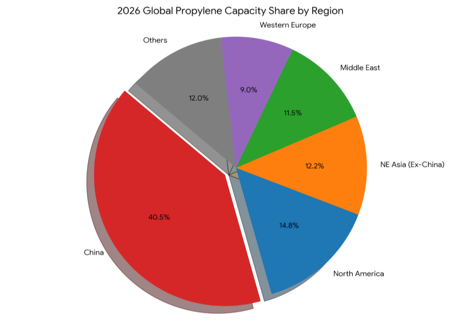 至於丙烯,2026年全球總產能來到1.58億~1.62億噸左右,產能增長率落在6.5~7.2%左右,需求端成長則落在3.5~4%,以供給速度來看,其擴張速度較乙烯稍快,而成長動能有高達75%皆來自於中國,主要原因是丙烯的下游應用主要用在汽車零組件、風電葉片等產品,而這兩大類都是中國目前全力發展的內需產業。不過相對應的,因丙烯下游還有包括房地產、家電,所以相較於乙烯有包材的硬需求支撐,丙烯業者的獲利變動性一般較乙烯來的更大。