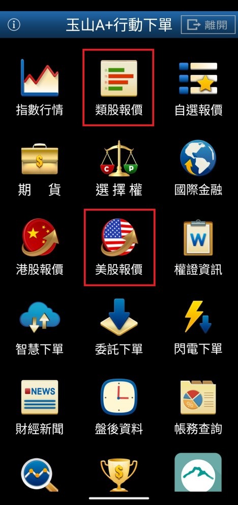 ▼1-1 點擊首頁「類股報價」 或 「美股報價」功能