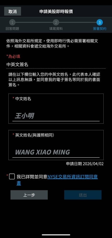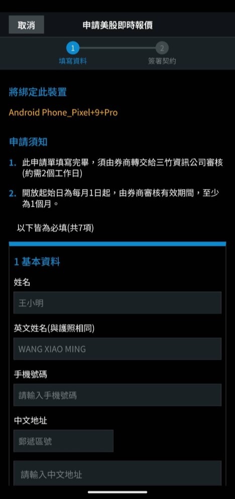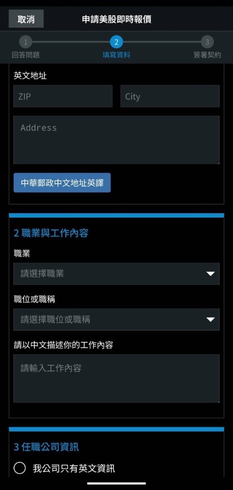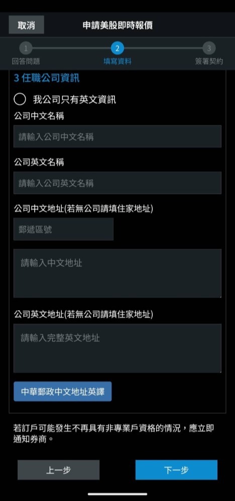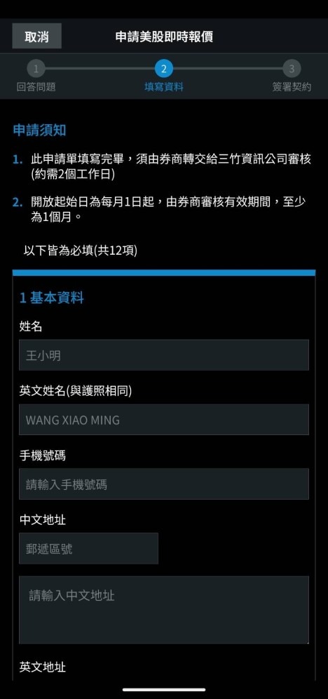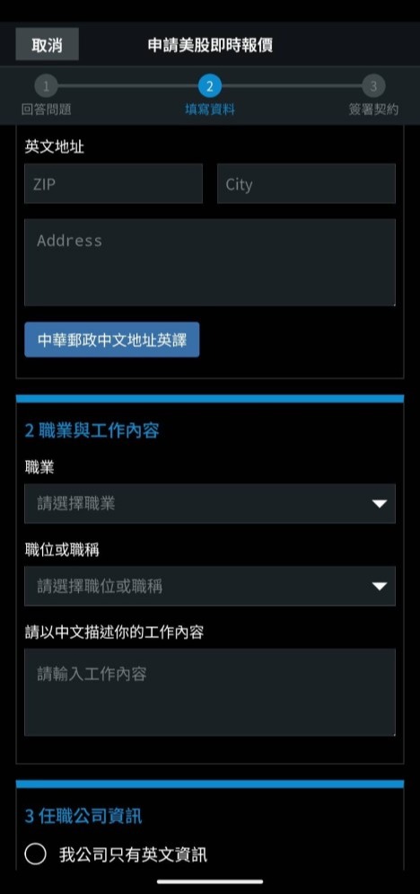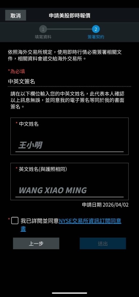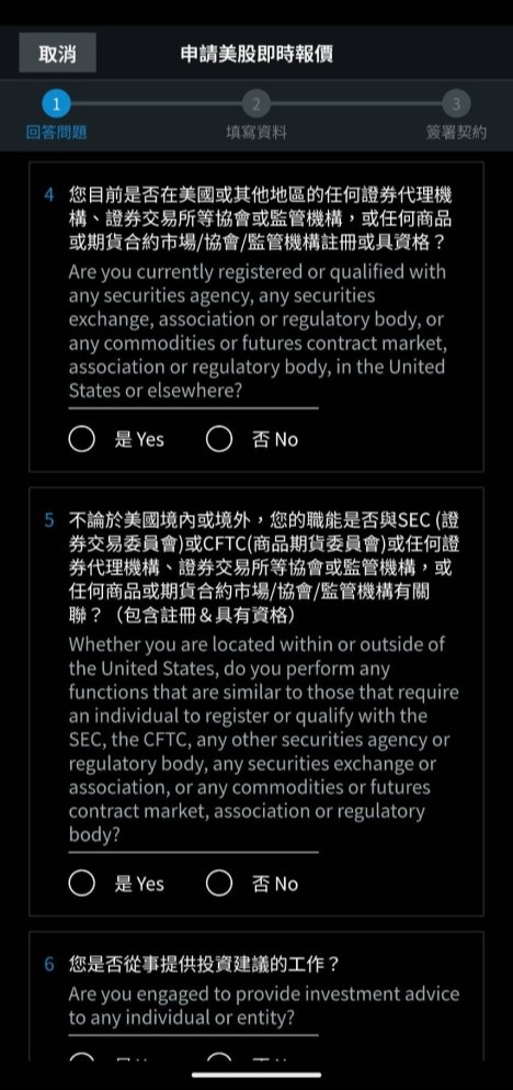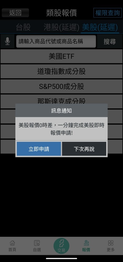 ▼1-2 點選右上方「美股」類別即會跳出申請視窗