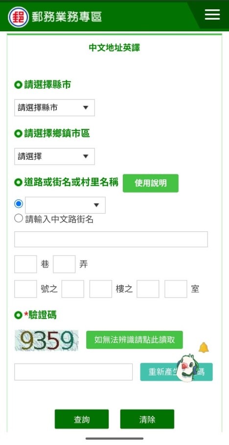 ▼[非專業用戶]2-5 英文地址填寫時,請先點擊藍色按鈕之「中華郵政中文地址英譯」即可進入地址翻譯頁面。
