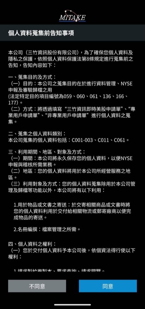 ▼[非專業用戶]2-1 閱讀「個人資料蒐集前告知事項」,選擇同意即可進入下一畫面。